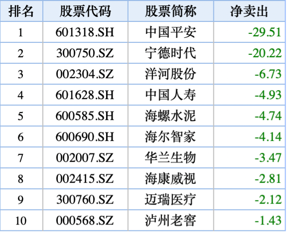 本周,北上资金净卖出金额较多的个股为中国平安和宁德时代,分别净卖出29.51亿元、20.22亿元。