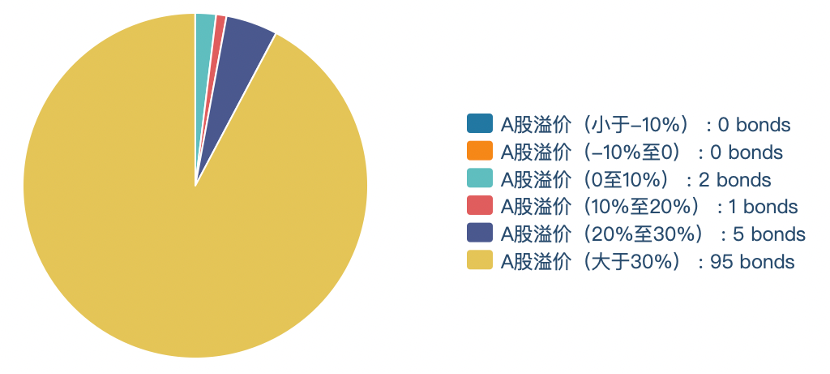 本周共有95只A股溢价超过30%,有6只A股溢价在10%-30%之间,溢价差距仍然高企。