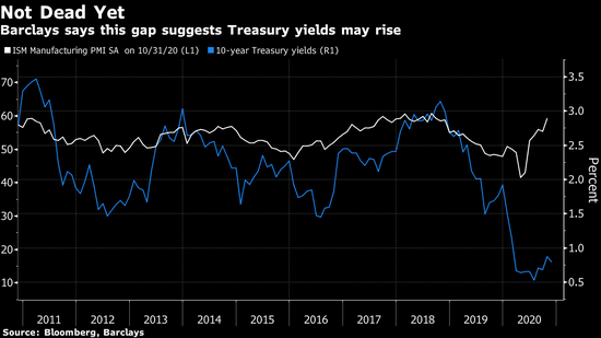 “较少的财政刺激意味着最终会有更多的货币刺激(量化宽松 ),”Jamie Fahy为首的花旗策略师在周四的报告中写道。“这是政策刺激至关重要的时候,因为新冠病例持续上升,而经济风险偏向于下行。”