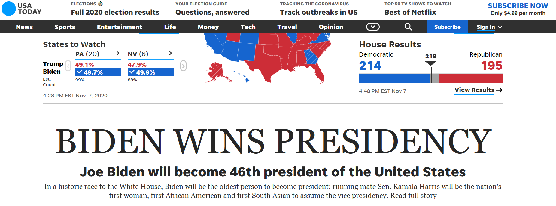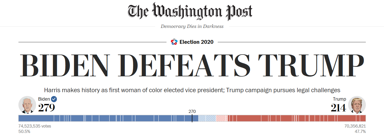 洛杉矶时报:拜登当选,哈里斯成首位女副总统
