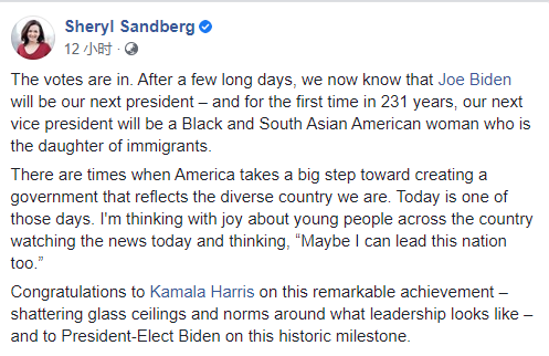 拜登当选后,科技界大佬们都纷纷在社交媒体发声,对拜登和哈里斯表示了祝贺。