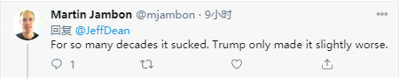 有意思的是,这条推特下的一条评论称,几十年来它一直很糟糕,特朗普只不过是让情况稍微恶化了。