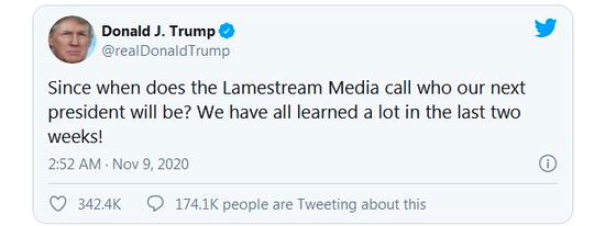 特朗普发推:什么时候由媒体来宣布下任总统了?