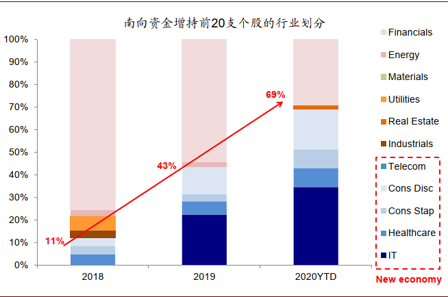 图表:南下资金偏好新经济板块