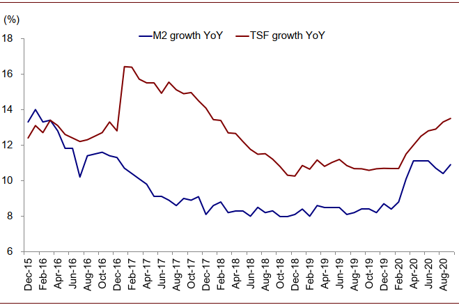图表:M2和社融增长明显反弹