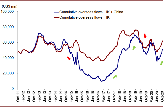 图表:累计流入海外中资股的海外资金