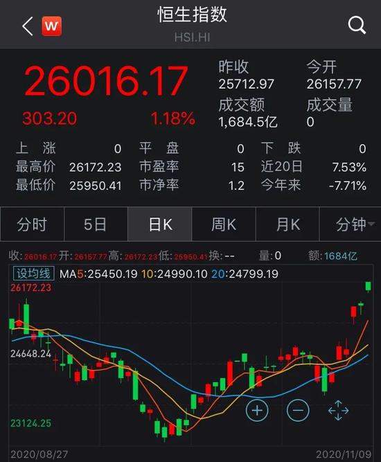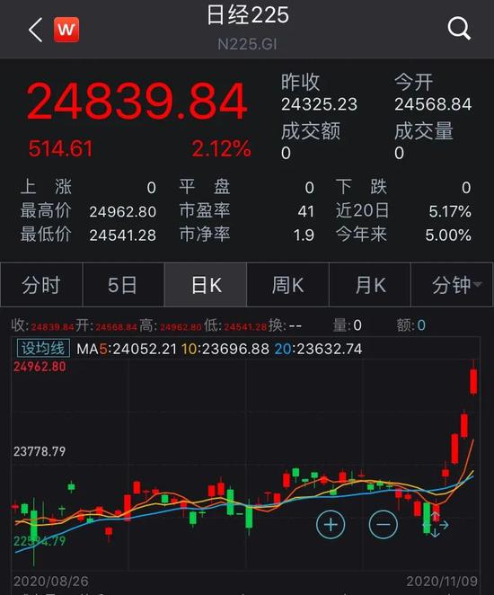 从隔夜行情看,在疫苗的消息出现后,全球市场便直线拉升。道指期货涨超5%,标普500指数期货涨超4%,触及历史新高。