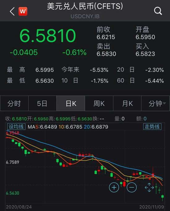 11月9日,人民币对美元汇率中间价报6.6123元,调升167点,创2018年6月底以来新高。