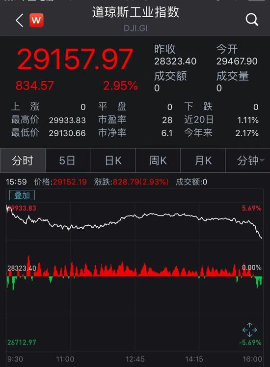 截至收盘,美股尾盘回落,道指收涨逾830点,开盘一度涨逾1600点;纳指跌1.57%,标普500指数涨1.14%。金融股、能源股、航空股大涨,而科技股多数走低。