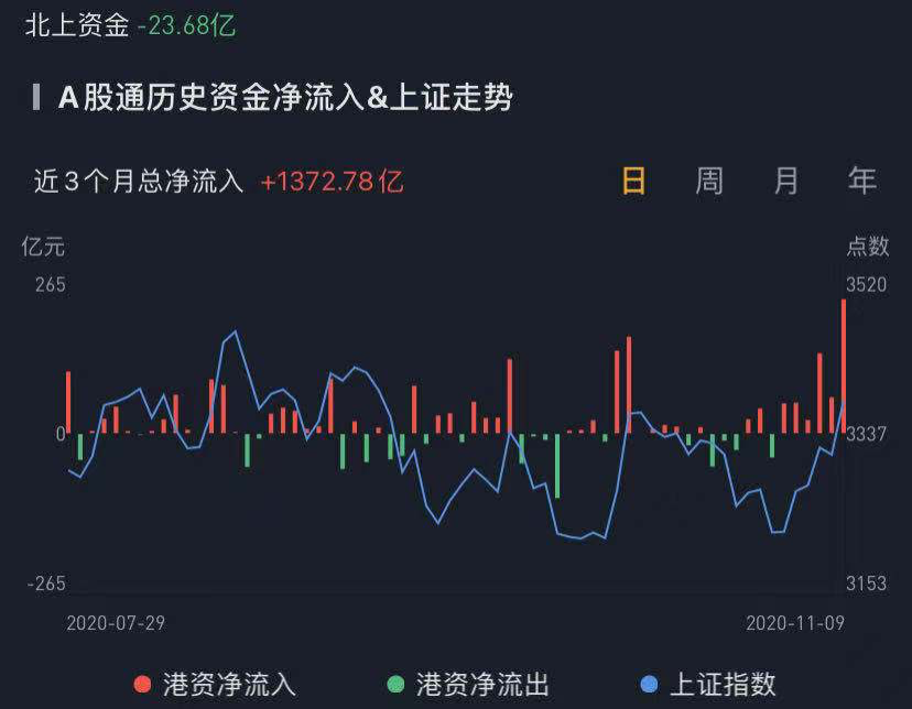 北上资金今日净流出A股23.68亿元,而昨日一度大幅流入超200亿元。