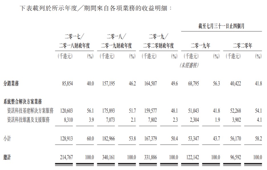 招股书显示,该公司是一间于香港成立的垂直整合资讯科技解决方案供应商,主要从事于香港分销资讯科技产品以及于香港、内地及澳门提供系统整合解决方案。