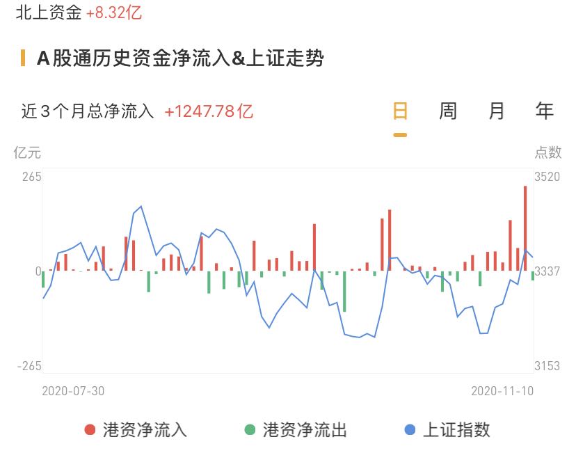 北上资金今日流入A股8.32亿元,扭转前一日流出局面。