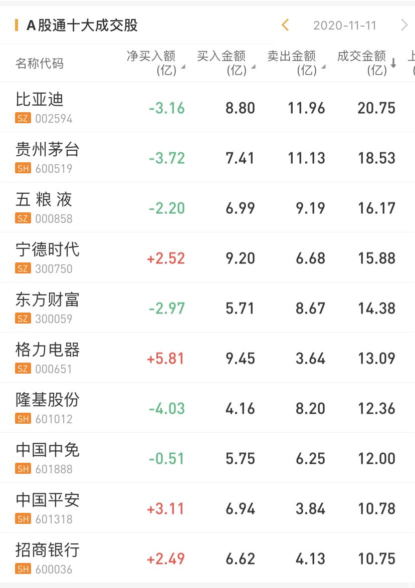 北上资金今日净买入格力电器5.81亿元,净买入中国平安3.11亿元,净买入招商银行2.49亿。净卖出比亚迪3.16亿,贵州茅台3.72亿元。