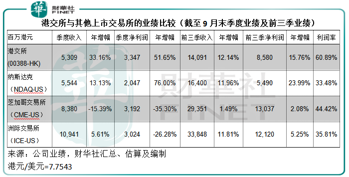 尽管规模尚小,但港交所今年前三季度的业绩表现丝毫不输国际级交易所集团。