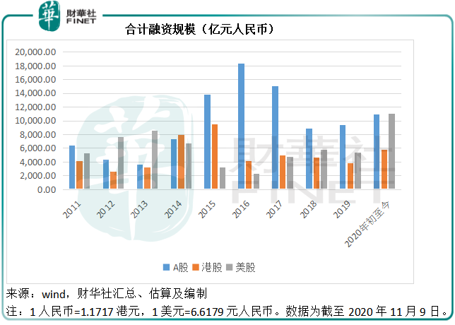 不论A股、港股还是美股,到今年11月9日为止的新股融资规模和合计融资规模都已远远超过去年全年。