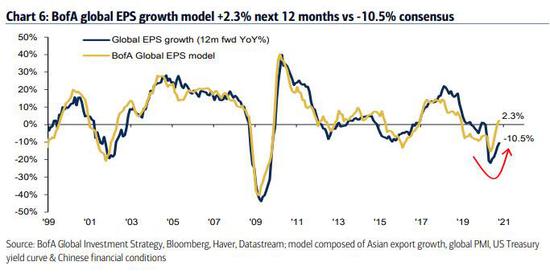 利润方面,决策者成功地提升资产价格已经导致:1、家庭财富效应(美银的信用卡用户支出同比增长7%);2、企业资产负债表再膨胀。美银预计,由于新冠肺炎病例大增,明年股市上涨的动量可能暂时停滞,疫苗研发的好消息意味着GDP/EPS/SPX的共识预期迅速攀升。