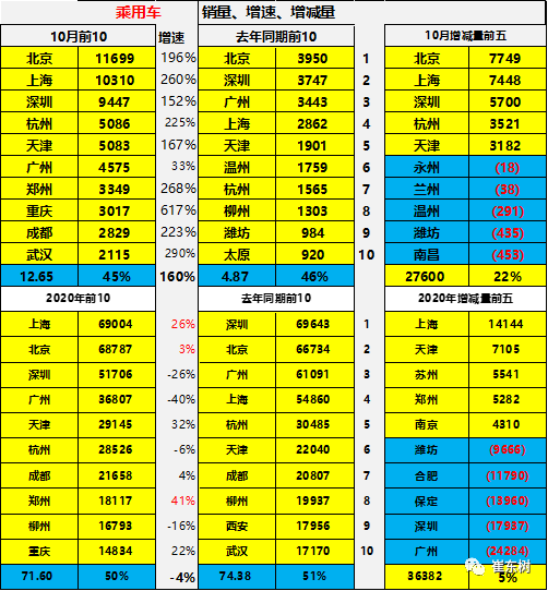 10月的新能源车增长主力仍是特大限购城市,上海、深圳、北京等相对突出。但全年看的市场增量在苏州、南京等大城市,目前柳州、运城、临汾等特色区域推广地区表现较强。