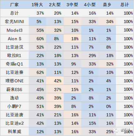 比亚迪(01211)、上汽乘用车、吉利(00175)等在各类市场的份额相对均衡,且特大城市和县乡市场的表现稍强。