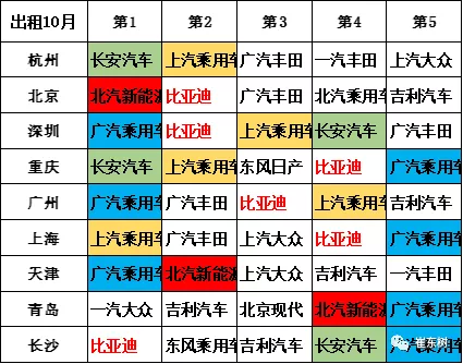 其中各个厂家在各地的出租市场表现也是差异较大。本地产品在本地出租市场的占有率并不一定很高,比如深圳市场,还有天津市场今年都是外地品牌表现相对优秀。