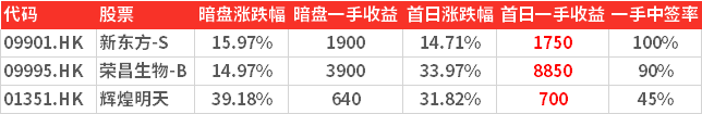 2.本周新股行情火爆,三只新股挂牌第一天全部大涨!荣昌生物-B涨幅34%,新东方-S涨幅15%,辉煌明天涨幅32%,平均涨幅26.83%,一手合计收益1.13万港元。
