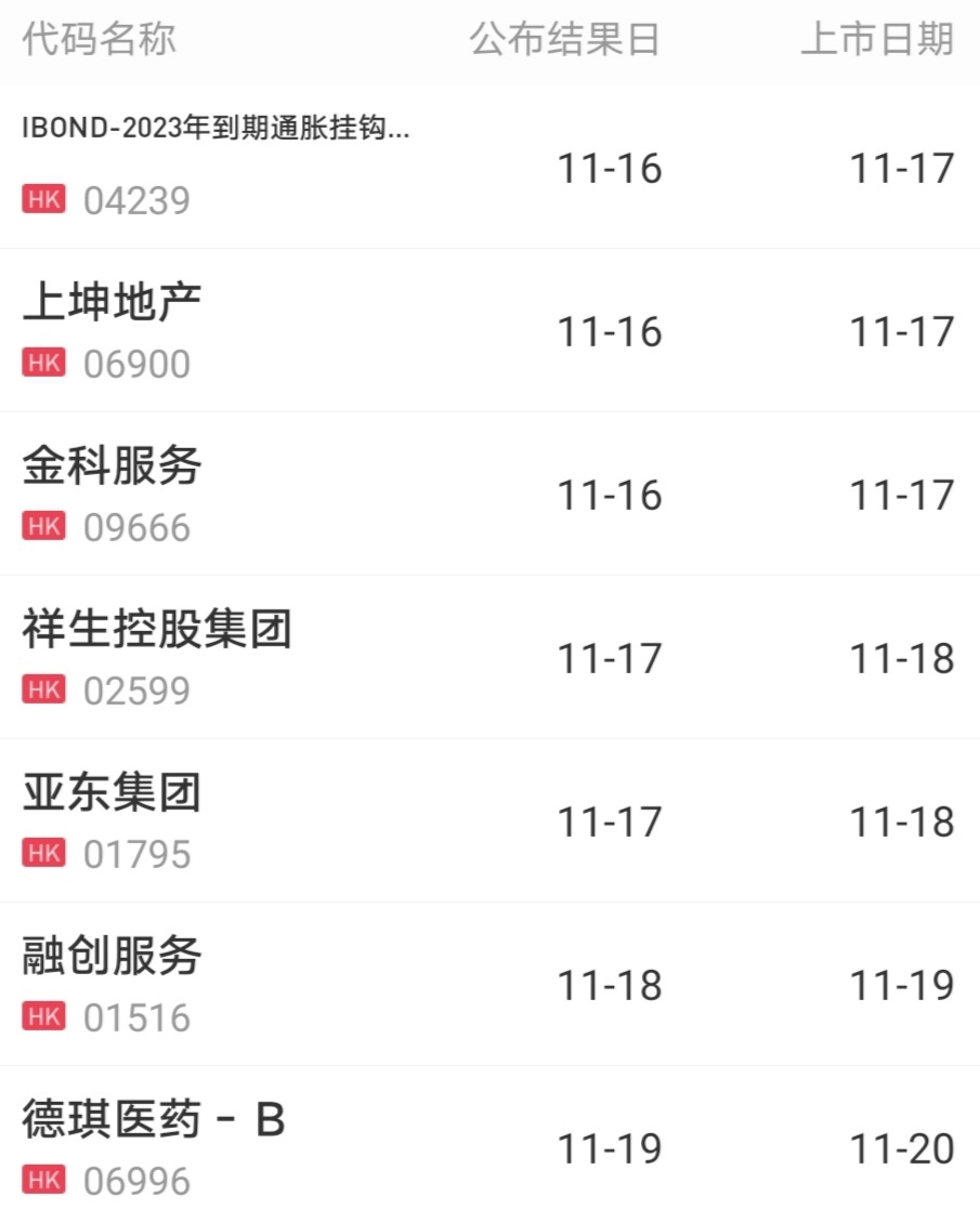 经历频频破发后,11月中旬新股市场行情明显回暖。本周上市的三只新股首日全部大涨,平均涨幅26.83%,一手合计收益1.13万港元,打新情绪有望再度步入正轨。