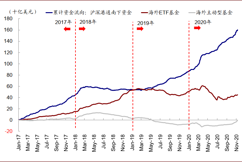 图表:年初以来累计的净买入规模已经超过5775亿港币,大幅超过2019年和2018年两年的加和