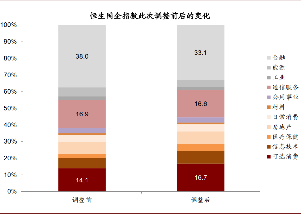图表:国企指数此次调整前后的权重变化