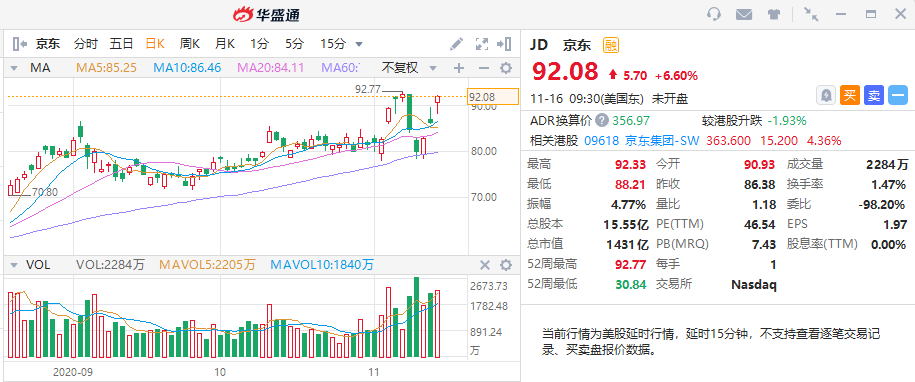 其中在今年疫情之下,科技公司普遍受益增长,在刚过去的双十一活动后,京东实现平台累计下单金额超2715亿元人民币,刷新历史最高纪录,令人不禁对其三季度业绩表示期待。与此同时,京东健康在15日晚间上传了聆讯后资料集,意味着这家互联网医疗健康领域首家图片百亿公司即将赴港开启招股。
