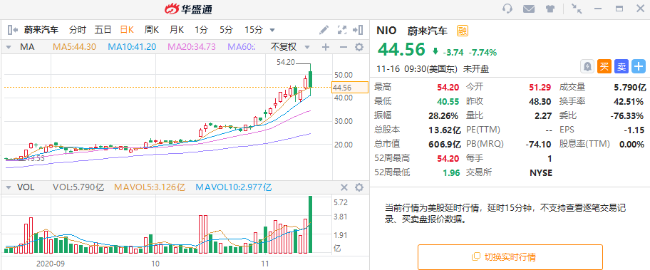 蔚来在11月17日盘后将发布三季度财报,从2019年10月创下新低股价1.19美元以来,短短一年多时间累积最大涨幅已经超过45.5倍,可谓美股今年最炙手可热的新势力。