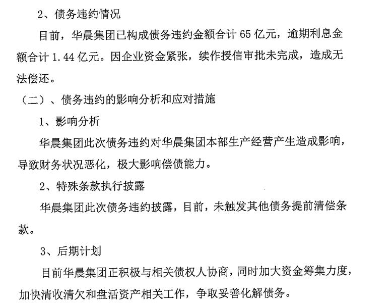 原标题:华晨集团65亿债务违约,逾期利息1.44亿