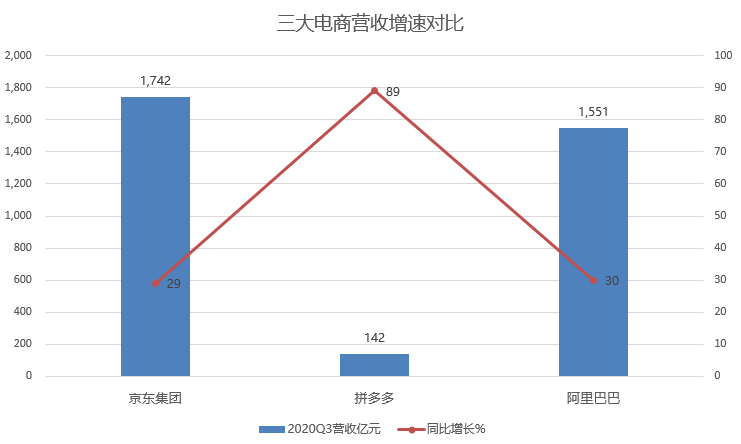 首先来说第一点,三家电商巨头都交出了超出市场预期的优秀业绩,其中阿里和京东在营收已经超过1500亿元规模的情况下,仍然保持30%左右增速,非常难得。