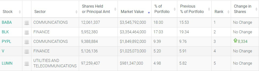 而新加坡主权基金淡马锡则将阿里巴巴作为第一重仓股,持仓约1206.1万股,持仓市值约35.5亿美元。