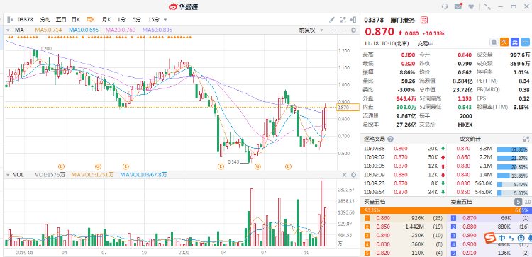 11月18日消息,厦门港务H股涨10.13%,A股涨停,中国将在厦门建立金砖国家新工业革命伙伴关系创新基地。