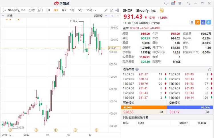 其中Shopify业绩增长最快,根据最新一期财报显示,2020年增速高达96.5%,股价也相应上涨131%。