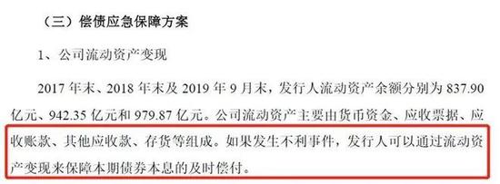 2020年,华晨集团发行“20华晨01”(华晨汽车集团控股有限公司2020年非公开发行公司债券(第一期))的《募集说明书》显示,2017年末、2018年末及2019年9月末,发行人流动资产余额分别为837.90亿元、942.35亿元和979.87亿元。就算出了什么事,发行人可以通过流动资产变现来保障债券本息的及时偿付。