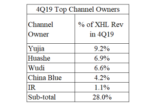 据XHL称,这五家公司目前仍然是头部工会,其收入占XHL 2019年第四季度YY直播收入的百分比如下所示: