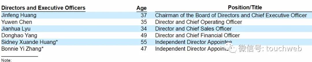 IPO前,Jinfeng Huang(黄锦峰)持股为27.7%,有60.2%的投票权;Yuwen Chen持股为8.3%,有18.2%的投票权;
