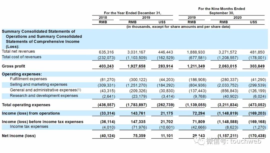 2019年逸仙电商实现经调整后净利(Non-GAAP net income)1.5亿。可能是疫情的影响,逸仙电商2020年前9个月净亏11.57亿元。