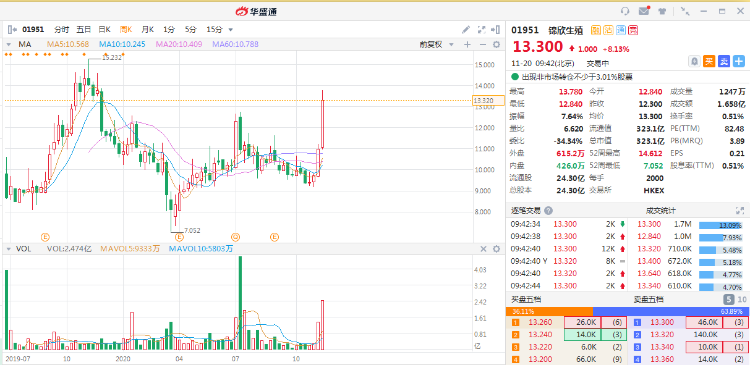 据联交所最新权益披露资料显示,2020年11月16日,锦欣生殖(01951.HK)获Gaoling Fund, L.P.及Hillhouse Capital Advisors, Ltd.在场外以每股均价10.50港元总计增持约1.06亿股,涉资约11.08亿港元。增持后,高瓴通过Gaoling Fund, L.P.及Hillhouse Capital Advisors, Ltd.对锦欣生殖的持股达到7.69%。