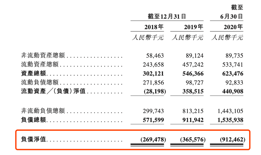 此外,近年来公司的负债净值均为负并且有持续扩大的趋势。2018、2019及2020年上半年,诺辉健康的负债净值分别为2.69亿元、3.65亿元、9.12亿元,投资者需关注公司资产负债结构或隐含的风险。