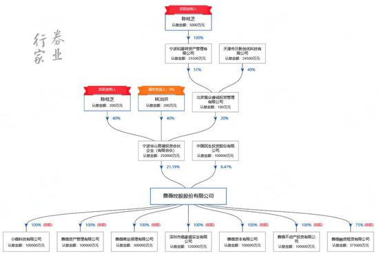 2019年中报显示,截至2019年6月30日,蔷薇控股通过蔷薇深圳-蔷薇香港……等一系列关系,最终持有中民金融28.11%的股份。