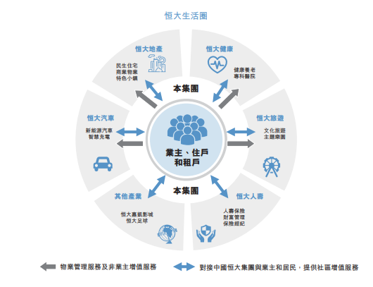 中国恒大集团为业务多元化企业集团,业务覆盖房地产、文化旅游、健康管理及新能源汽车等。根据中国房地产TOP10研究组的研究,于2020年,以综合实力计,恒大集团是中国房地产开发行业的标杆龙头;根据克而瑞的排名,以应占签约销售计,自2017年起连续三年在中国物业开发商排名中位居榜首。恒大物业认为恒大集团庞大的土地储备为他们开发优质项目提供具有巨大潜力的途径。