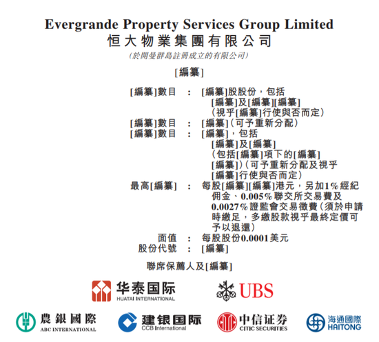 据了解,此次恒大物业港股IPO由华泰国际、瑞银、农银国际、建银国际、中信证券和海通国际为联席保荐人。公司募集资金将用于战略收购及投资;开发其增值服务;升级信息系统及设备;招聘及培养人才及营运资金。