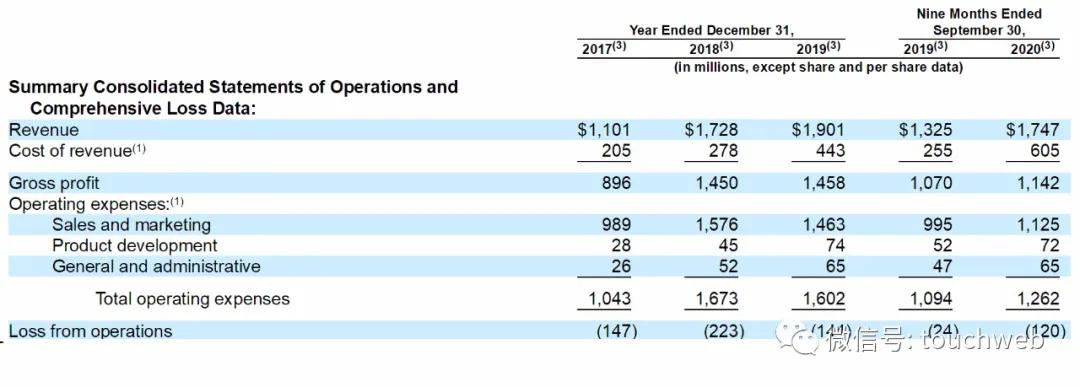 上述三年,其运营亏损分别为1.47亿美元、2.23亿美元、1.44亿美元,2020年前9个月为1.2亿美元。