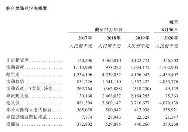 2017年至截至2020 年6月30日止六个月,公司总资产分别为12.54亿元、43.4亿元、41.6亿元以及44.6亿元。