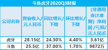 虎牙斗鱼这两个相爱相杀的直播平台在同一天发布了第三季度财报。在斗鱼Q3财报出炉的当天,斗鱼提交了从纳斯达克退市的申请,因此这将是两者合并前,斗鱼的最后一份财报。