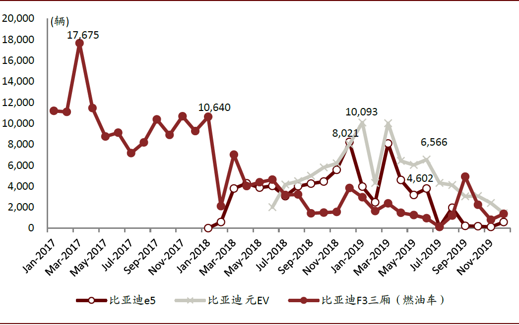 ► 对公司:分离整车与电池技术进步曲线,延长现有车型生命周期。相比于燃油车,新能源汽车更新换代较频繁,主要原因是电池技术革新较快,而车电捆绑销售导致车企为了匹配新电池,只能频繁开发新车型。以比亚迪e5、元EV、F3三厢为例,新能源车e5和元EV销量从峰值下降到50%所用时间分别为4个月和5个月,而燃油车F3(三厢)的销量从峰值下降到50%所用时间为10个月。在车电分离销售的模式下,我们认为保留原车型、不断更换新型电池的消费模式成为可能,解决了电池频繁的更新需求与车型相对平缓的更新需求之间的矛盾。厂商无需为匹配电池更新而频繁推出新车型,从而节省开发支出。