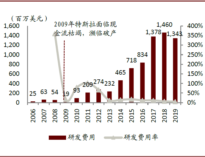 初创企业把有限的资金用在最能创造收益的地方才是最优选择。资金短缺是大多初创企业都会面临的问题,大多失败的造车新势力都是以资金链断裂却还没有量产产品为结局。但初创企业并非完全不能烧钱。例如,特斯拉发展初期面临较紧的资金约束,但是对于作为品牌标签的自动驾驶的研发投入依然较大。甚至2009年一度面临现金流枯竭困境,2010年公司拿到资金支持后研发投入进一步加大。2019年,特斯拉的研发费用率仍保持在较高水平(5.5%),与此同时,2010至2019年销售、行政及一般费用率逐渐缩减,2019年已达到11%以下。