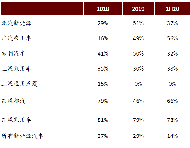 降低成本,控制费用。1)减少电池用量降低成本:理想ONE仅装配40.5kWh的三元锂电池;2)降低销售费用:理想汽车采用“线上+直销”模式,同时维保环节外包,降低销售费用。3) 较强的费用管控能力:与其他造车新势力相比,理想汽车在销量规模目前还较小的情况下,盈利能力已超蔚来,费用率已经低于1Q20的蔚来和2014年刚开始放量的特斯拉,显示出出色的费用管控能力。