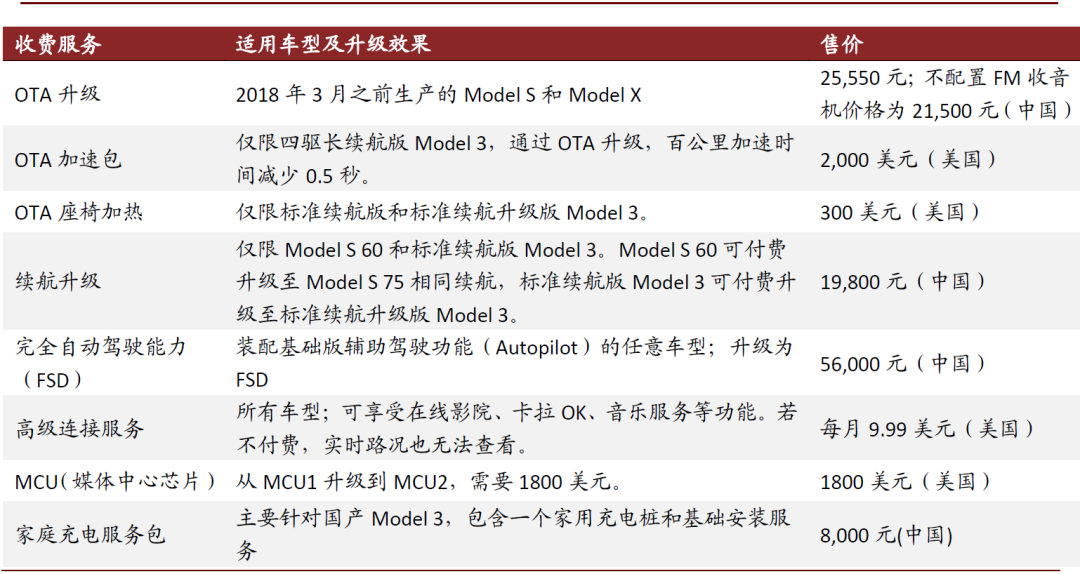 特斯拉推出付费订阅服务,从赚新车的钱拓展到赚保有量的钱。特斯拉2019年销量约为33万辆,截至2019年全球保有量约77万辆,随着产销量不断爬坡,保有量持续上涨,特斯拉推出了一系列付费升级及付费订阅服务,收入来源从主要由新车贡献逐渐转向增量、保有量共同贡献。同时,我们认为,付费订阅服务的前期投入不大、现金流稳定,有利于改善车企现金流,提升盈利能力。